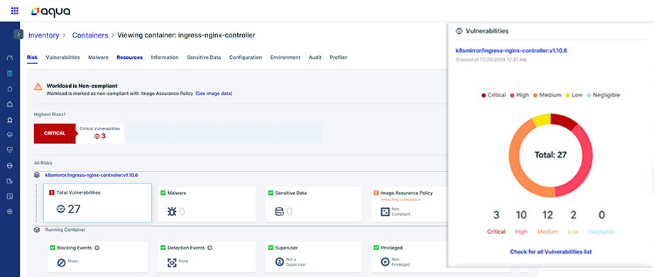 In Aqua Hub, we can see that the ingress controller pod has been detected.