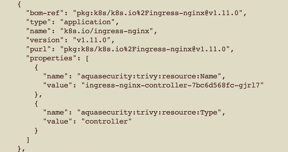Trivy’s KBOM (Kubernetes Bill of Materials) allows you to map the composition of your Kubernetes clusters, including the cluster’s core components. You can generate a KBOM for your Kubernetes cluster and identify if it uses ingress-nginx and what version is installed.